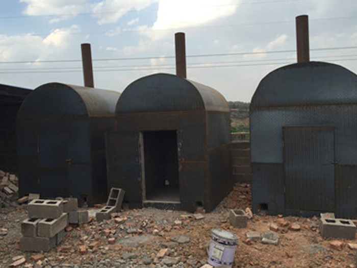 土窯的建造要選資源豐富,運(yùn)輸方便,坡度較小的空敞地作窯址,靠近水源,土壤要堅(jiān)實(shí), 好是粘土。在選好的窯址上,畫(huà)一個(gè)等邊三角形,每邊長(zhǎng)約2.1m。在線內(nèi)向下挖1m深左右,即為炭化室。炭化室前端略高于后端,在炭化室后面正中挖煙道腔和排煙孔,